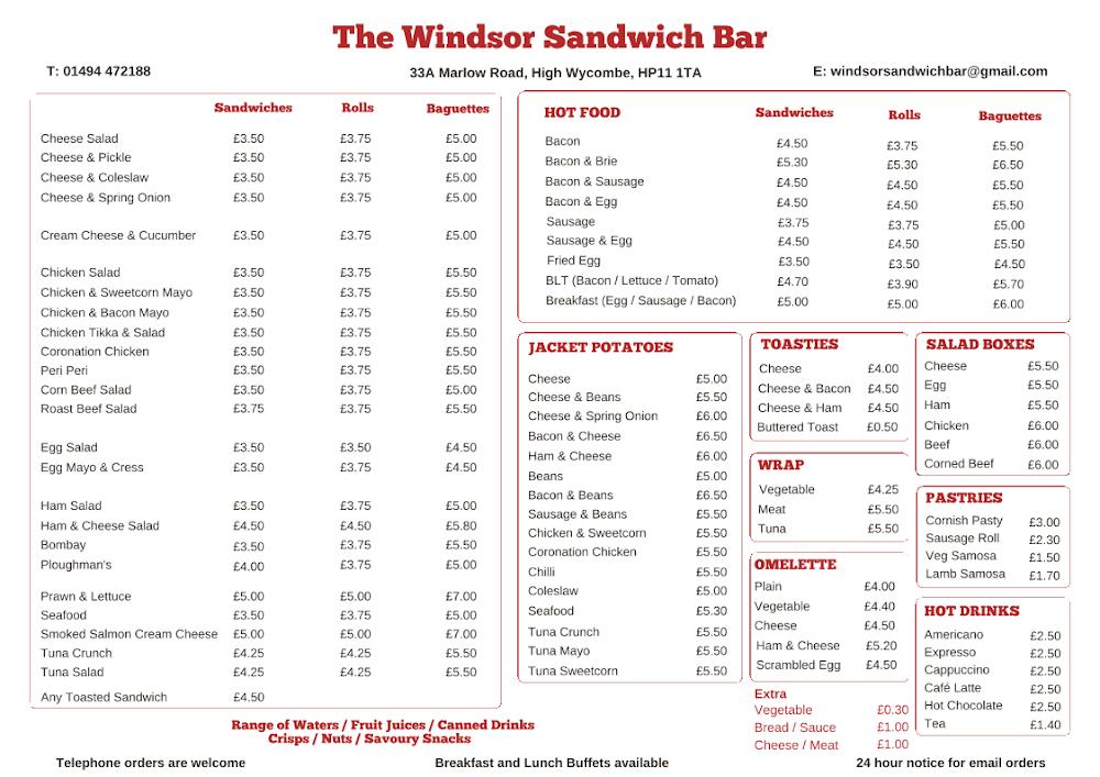 Located at 33a Marlow Rd, High Wycombe, The Windsor Sandwich Bar is not just about sandwiches; it’s about community. Serving locals for over three decades, this eatery has honed its craft by prioritizing fresh and locally sourced ingredients. The owners and staff ensure that every sandwich is made with care, reflecting their commitment to customer satisfaction. Step in any time from breakfast to lunch, and you’ll find a menu bursting with flavors and options. Breakfast items like their famous omelette and tantalizing toasties are perfect for those starting their day right. For lunch, indulge in stacks of creamy cheese, crispy bacon, or vegetarian delights crafted into rolls, baguettes, or salad boxes. The inviting atmosphere offers a stylish yet casual dining experience, making it an ideal spot for quick lunches or long chats with friends. Plus, with amenities like kerbside pickup and no-contact delivery, it's easy to enjoy delicious food even on the go.